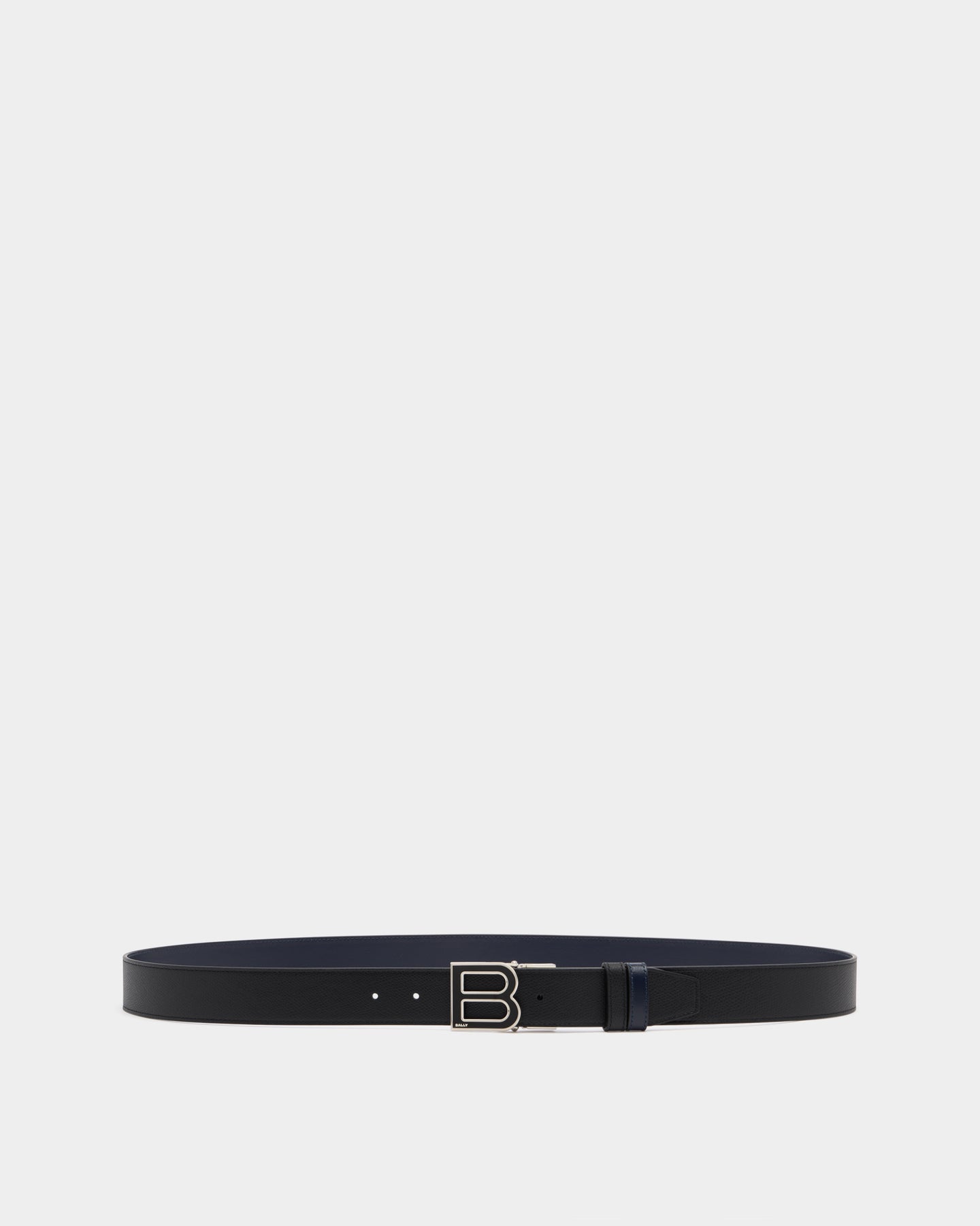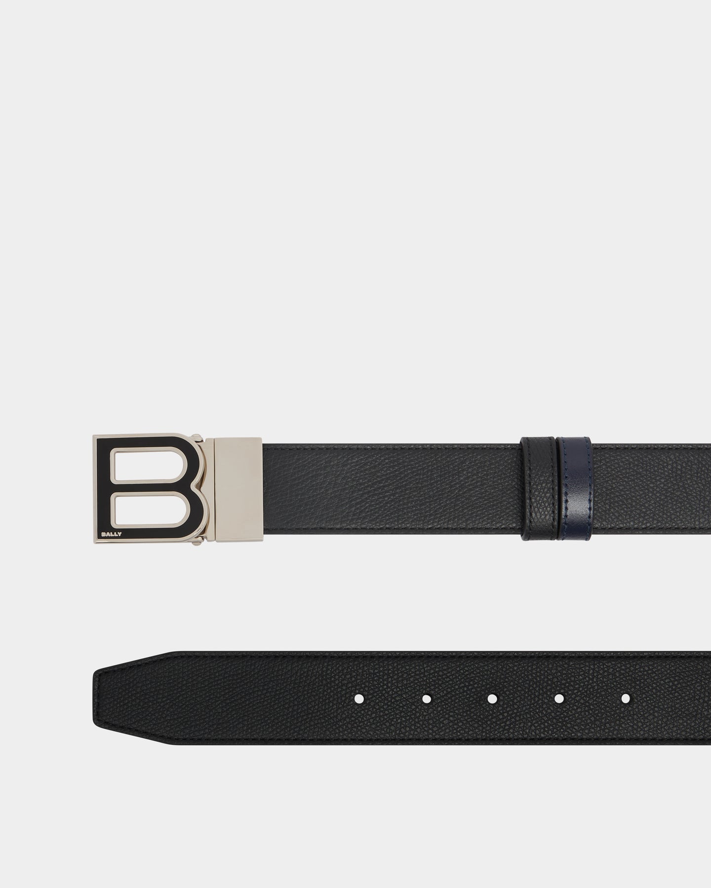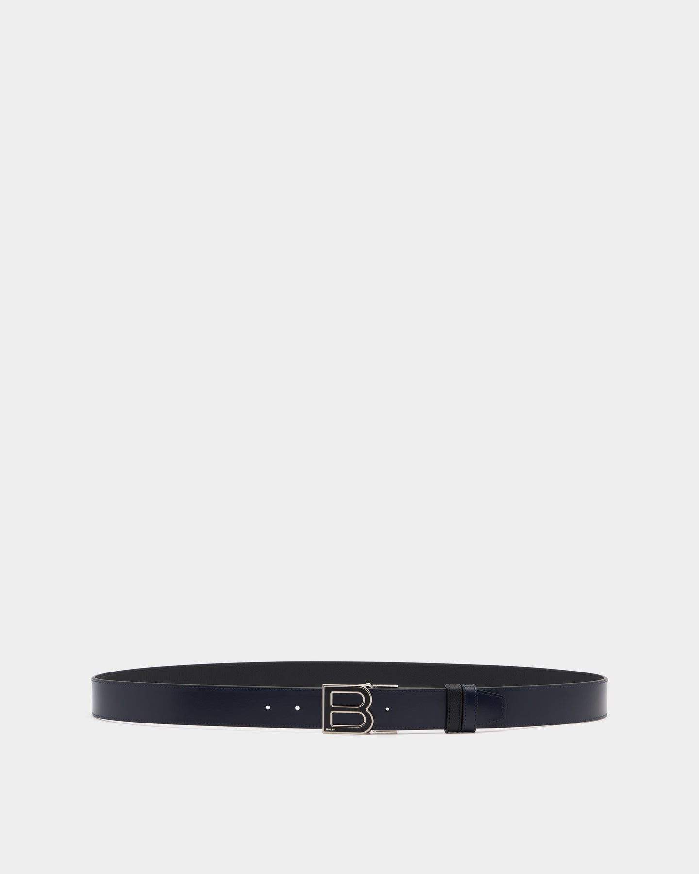 B Logo 35mm Adjustable And Reversible Belt in Black And Navy Blue Leather