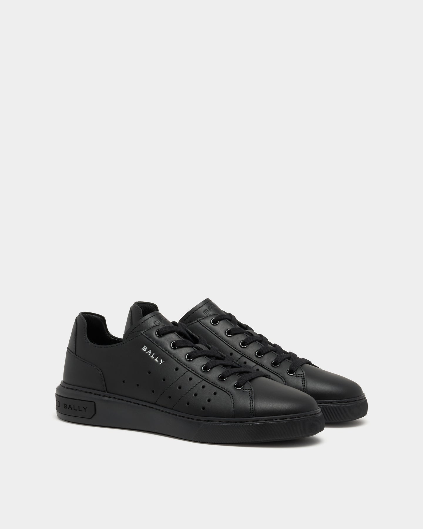 This sleek all-black Bally Lift sneaker is constructed in soft calfskin with a semi-matte finish and perforations across the unlined quarter. The rubber sole is designed for lightness.