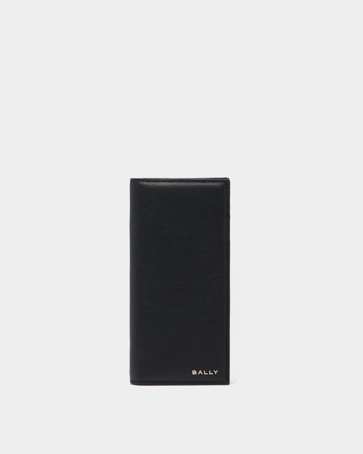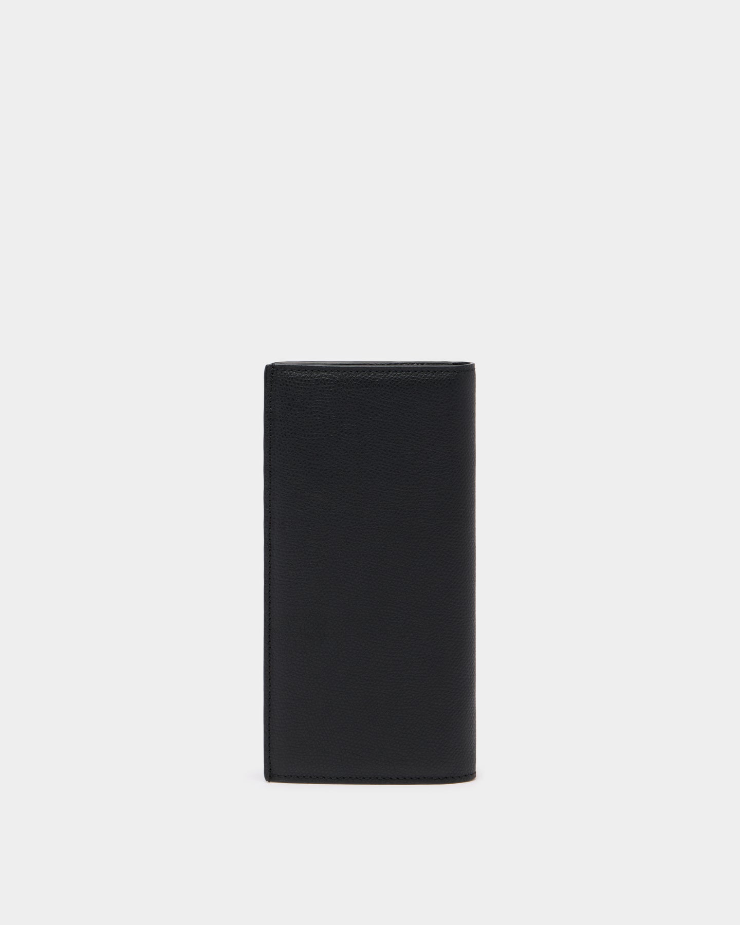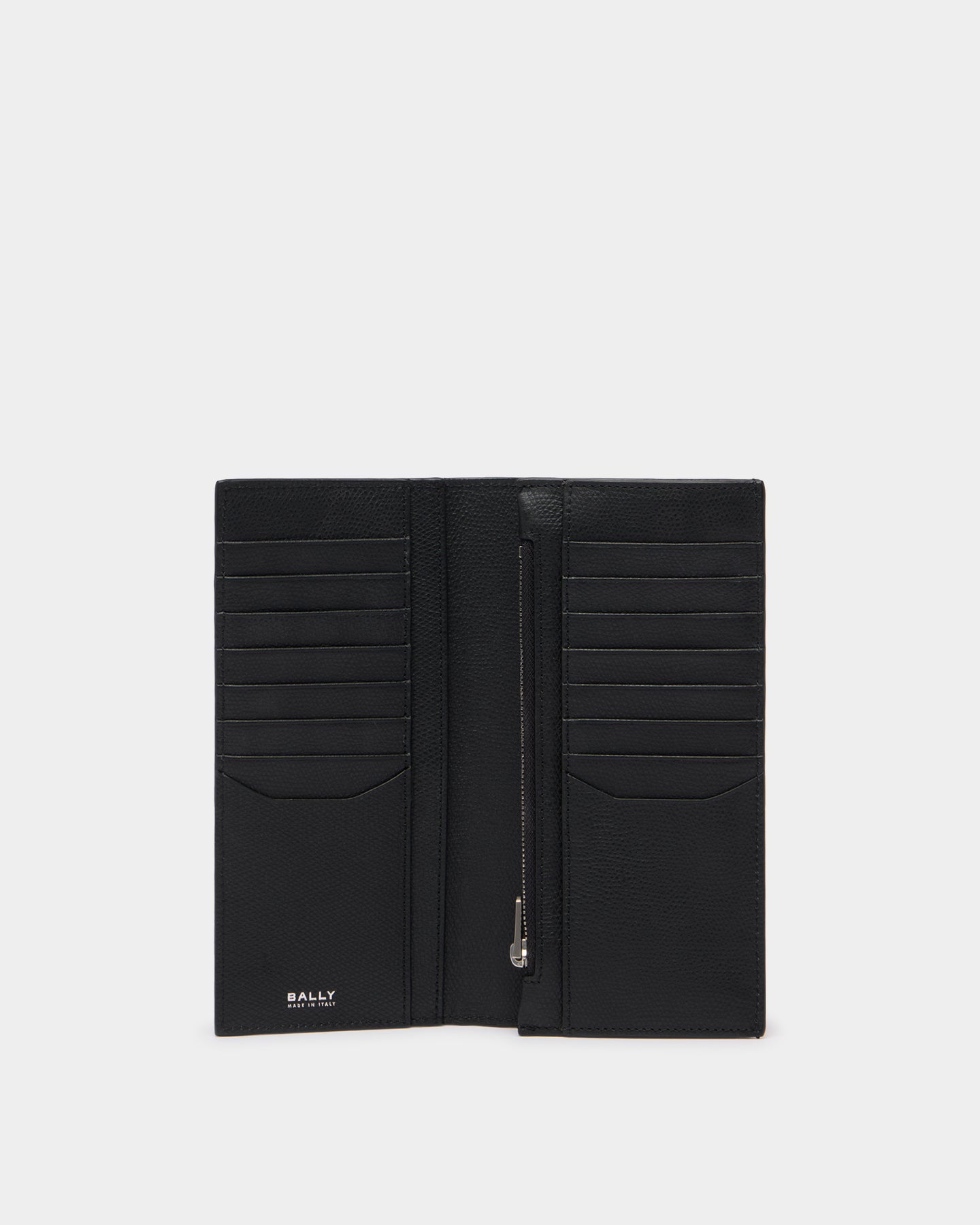 In black calfskin with an elegant grained finish, this Bally Essential continental wallet has room for eighteen cards plus cash and coins. The Bally logo in palladium-hue foil is a subtle yet refined detail on the front.