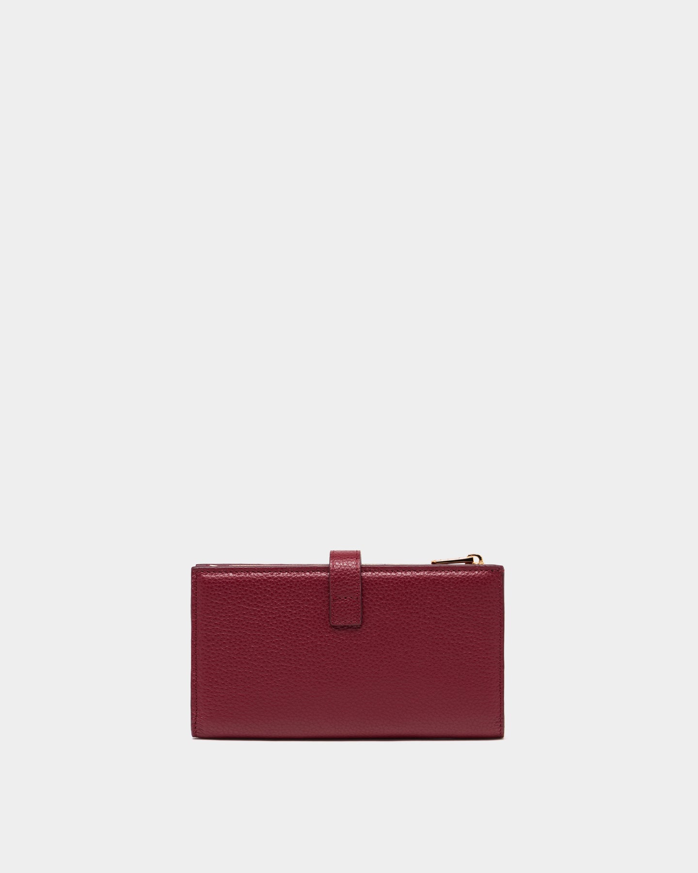 Crafted in ruby red grained leather, this Lock Me long wallet features internal card slots, a cash pocket and a zipped coin purse. It fastens via a gold-tone snap button closure with the iconic Lock Me hardware.